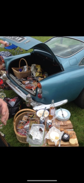 Nogle biler er, med deltagerantallet i bilen, for små til at man kan spise I bilen, og således må man jo spise ved bilen….