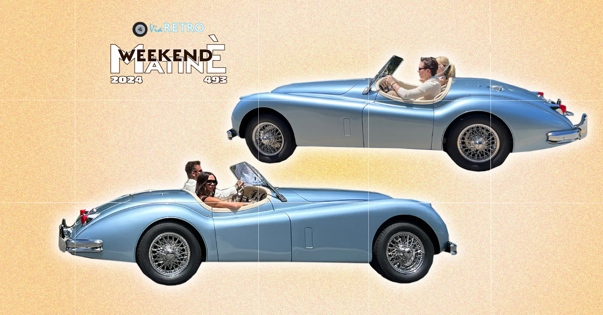Tror ikke at chaufføren på den fine ,lyseblå XK 120 tænker på mad!