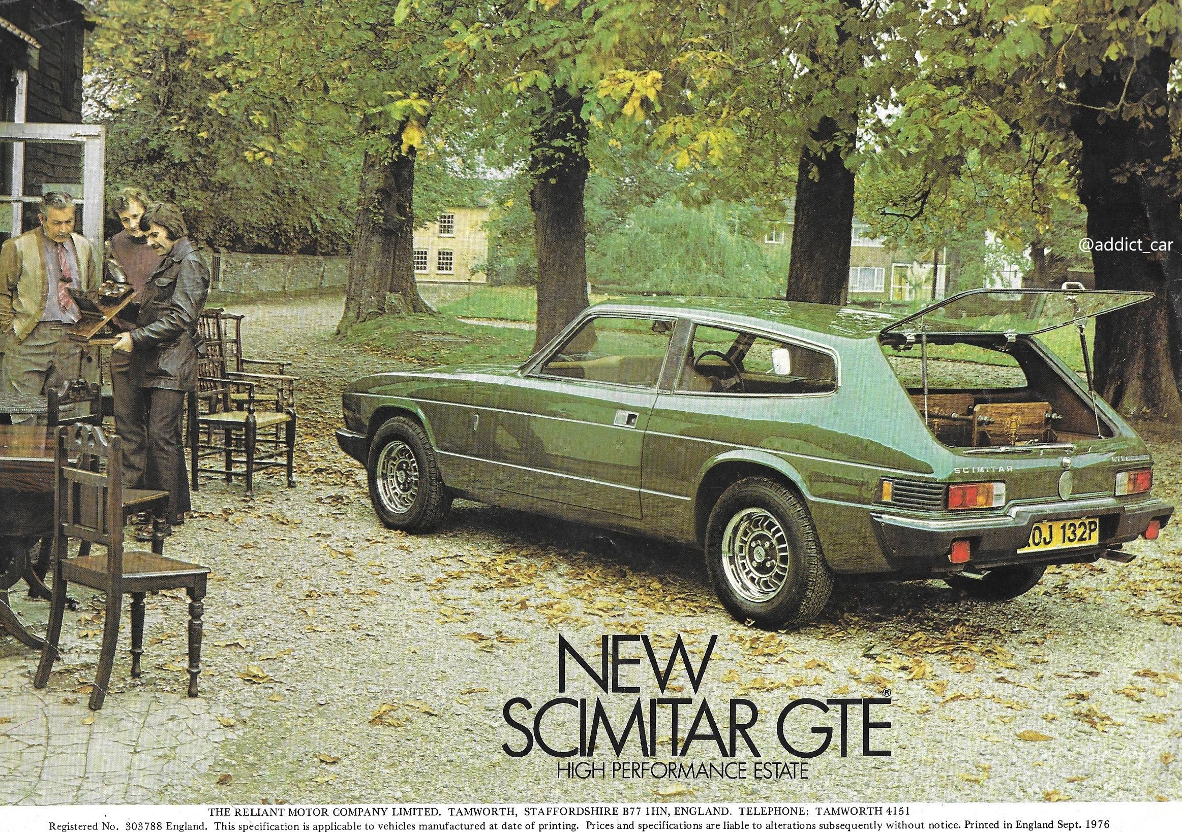 Det samme (bare bedre!) skete egentlig med min Reliant Scimitar. Jeg vidste jeg ville have en GTE, men højrestyret eller venstrestyret og gearkassen og modelvarianten var egentlig knap så vigtigt – og farven egentligt ligeså. Så dukkede der hele to op til salg (der kun kunne købes samlet), og den ene var British Racing Green og den anden Aztec. Altså gul.