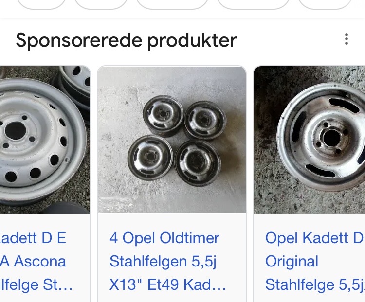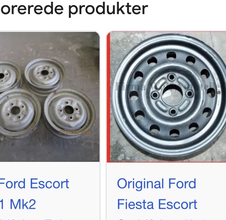 Ja de fælge lagde jeg også mærke til pga dybden på anlægsfladen. Det er ikke Opel fælge, gid det næsten havde været et sæt Kadett fælge hvis det skulle være Det er nye standard stålfælge. Forskellen er at på originale ståfælge til en Escort, Kadett og Ej at glemme FIAT er mønstret / hullerne for det meste ligger inde bagved linien på anlægsfladen, eller også lige foran. Ståfælge på Escorten i annoncen er noget bredere og derfor er indpresningen ændret og deraf ligger anlægsfladen så dybt i fælgen.